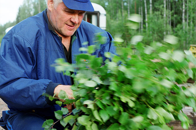 白樺の葉を束ねてつくる、サウナ用のヴィヒタですね。