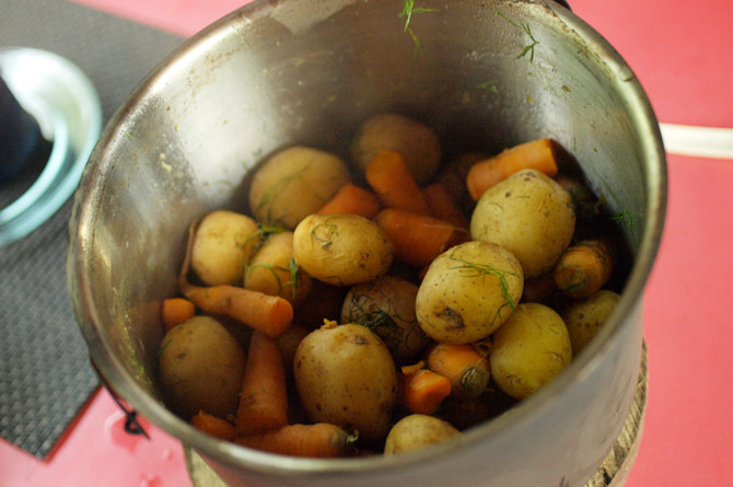サーモンのつけあわせの、温野菜。