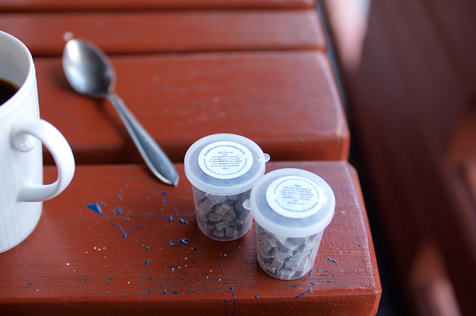 コーヒーをいただいていたら、ハッリさんが「これ、おみやげ」って、お菓子をくれました。