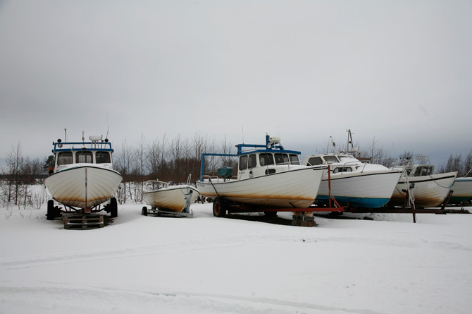 船も、陸にあげておかないと、氷に閉じこめられちゃいます。