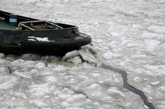 貨物船が来航するときに、砕氷船が活躍します。