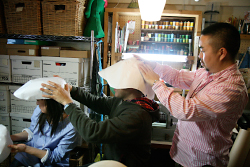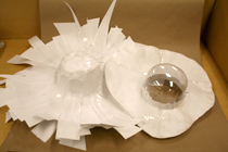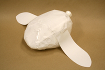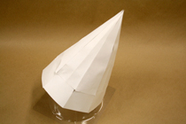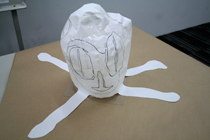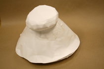 帽子のイメージが決まったら、それを立体にしてみましょう。 紙とはさみとセロファンテープで、ちょきちょきぺたぺた。 工作をするような感覚で、イメージを立体にしていきます。