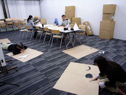 茶色い模造紙に、パーツのりんかくを写しとっていきます。