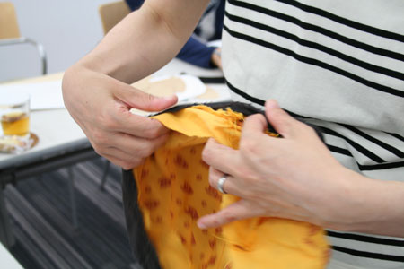 いそがなくちゃ。 いそがなくちゃ。 いそがなくちゃ。 なんてったって、アタクシ、 帽子を二つつくらにゃアカンねん。 作業量は、どんと二倍ですねん。 次のステップにすすむためには、 地味な切腹は、表も裏も縫い上げ、 リアルな切腹のほうは、表だけ縫い上げて、 裏地の相談をしなくっちゃ。 教室開催の前の晩に、夜なべですよ。 ![]() 名にし追う、夜なべですよ。 でも間に合わないから、 翌日の午前中にも朝なべですよ。 あ、朝なべはないか。 ![]() いそがなくちゃ。 いそがなくちゃ。 いそがなくちゃ。 ![]() ずばばばばば(ミシンの音)。 あれ、先生は、ひとつ縫ったら、 アイロンをかけて、縫い目を割れと言ってたな。 でもでもでも。 まにあわないから、そのまま縫っちゃおう。 ![]() ずばばばばば(ミシンの音)。 ![]() ふう。できたんじゃない? まにあったんじゃない? ![]() ほらほら、みてみて。 ここが、肉と内臓の境目だよ。 ほらほら、かぶってみたりして。 せんせい〜! できたとおもわれます〜! ![]() 「両方、ここまでできたんですか? すごいですねえ。 リアルなほうは、 おなじような質感の布で裏地を つくってもらうとして、 じゃあ、次のステップは、 地味なほうの表と裏を縫い合わせましょう。」 お。ネクスとステップ、オッケー? なんでも、表と裏を縫い合わせるときには、 補強のために、一枚布地を噛ませるんだそうです。 この、黒い布地がそれですね。 ![]() これを2センチくらいの細さにして、 ぐるりと円周にとめていくのです。 ![]() ん。んんんんんん? 先生、大変です。 大変なことがおこりました! 「ど、どうしたんですか? 順調だったじゃないですか!!」 えー、ぐるっとしていましたら、 表の布と裏の布の長さが違うんです! 「えええええ?? ちょっと見せてください。」 ![]() 「‥‥‥。 なるほど。 もぎさんの帽子は、いくつかの布地が、 一つに集まるポイントがありますよね。 なんか、このあたりに、 えい! って感じでてきとうに まとめた跡がありますよ。 おそらく、原因はこれですね。」 がい〜ん。 ![]() あれ、同じようなことが過去にもなかったか。 その、雑さ故にやり直しをしたようなことが。 でもって、すでに傷だらけの肝に ばりっと銘じてなかったか? 「丁寧にやれよ。」と。 今回もまたまた、その「雑の病」が発病だ。 本当に、その病は自分の膏肓に入ってるわけである。 「えい! って感じでてきとうにまとめた跡」って‥‥。 先生、先生。 もう、地味切腹もリアル切腹も 布をとるところからやり直します。 出直してきます。 ![]() 「いやいや、たぶん 地味なやつのほうの、 裏地だけ直せばどうにかなりますよ!」 いやいや、それでは 自分を甘やかします。 やり直します。 もう、全部やり直します。 「(笑)。 もう、何を言ってもムダっぽいですね。 じゃあ、がんばってくださいね!」 押忍。 がんばりまっす!