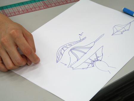 端にワイヤーを入れて、一気に縫いましょう。」