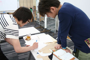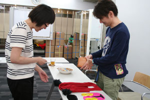 来客にミシンの面白さを力説するのを 最近の楽しみにしているたかしまです。 (被害に遭った方、スミマセン) いよいよ大詰めの今回も どうぞよろしくお願い致します。 さて、ミシンの扱い方にも慣れてきたので 本番の布を縫ってみることにします。 まずは買い集めたそれぞれの布から 型紙どおりにパーツを切り出します。 ![]() そしてミシンの登場です。 猫帽子の本体部分のパーツを縫い合わせていきますよ。 仮の帽子をスレキでつくったときと同じように てっぺん部分から順番に縫い合わせます。 フェイクファーでつくった耳は 生地が厚すぎてマイミシンでは縫えなかったので、 あとから手縫いでくっ付けることにしました。 なので、耳を挟めるだけの隙間を残しておくことを 念頭におきながらミシンを踏みます。 練習の甲斐あってミシン操作は我ながらスムーズ! スムーズすぎて、案の定耳の隙間を残すのを忘れて 縫い合わせてしまった失敗も正直に報告しておきます。 ミシンの縫い目はきっちりしている分、 失敗した糸を取り除くがけっこう大変でした。とほほ。 そうそう、縫い合わせながら 7mmの縫い代部分はこまめにアイロンで 左右にペタッと開いておきます。 そうしておかないと 裏地を縫い合わせるときに邪魔になってしまうのです。 この縫い代を“割る”作業は 割台という帽子用のアイロン台があるとやりやすいと スソ先生の著書に紹介されていたので、 木の丸椅子を横にして代用してみました。 ![]() ![]() 慣れないアイロンの作業にちょっと時間がかかった他は さすがミシン様、あっという間に 本体パーツの縫い合わせは完了です。 あとは仮の帽子のときの要領で耳を手で縫い付ければ… ![]() おー、なんか帽子みたいじゃないですか。 ちゃんとできてるっぽいじゃないですか。 来ました、ついにここまで来ましたよ。 スソ先生に見てもらうのを楽しみに思いながら、 しばし冠ってみたり脱いだりを 満足げに繰り返したのでした。 と、以上が今回の教室前日のできごとです。 縫い合わせた本体(耳付き)を うれうれとスソ先生にお見せしてみると、 「ちゃんと帽子になってますねー」と お褒めの言葉をいただきますますホクホク。 ![]() 今回は顔などのパーツの縫い付け方や 裏地のつくり方など、 完成までの残りの手順に関する疑問点を あれこれまとめて教えていただきました。 ![]() 帰ったらマイミシンでやってみまーす!