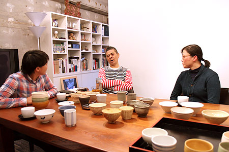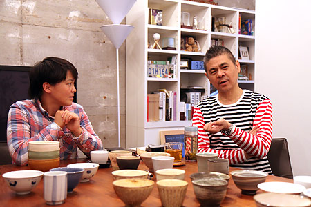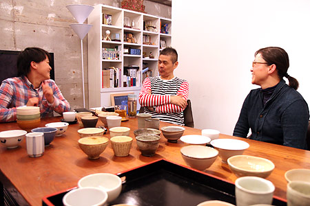 はい、ひと窯分全部買うからっていう、 俵屋さんがいてくれはったから、 私は、家を出れたんやと思います。 家を出るというのは、 半分は──、逃げました。 でも半分は、もうちょっと自分を 厳しいところへ置いてみたり、 家を離れてほんまにものを作ってみたい、 っていうのがあって、 それで磁器土に出会ったんです。 そのときに後押ししてくれたのが俵屋さんで、 全部買ったげるから何でも持ってらっしゃいと。 |
