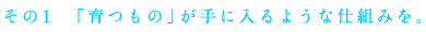 | 糸井 | そんなふうに「育つもの」が 手に入るような仕組みを作れないかねって。 |