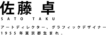 1979年東京芸術大学デザイン科を卒業、1981年同大学院修了、株式会社電通を経て、1984年佐藤卓デザイン事務所設立。おもな仕事は、グラフィックデザインを中心に、「ニッカ・ピュアモルト」、「ロッテ・キシリトールガム」、「明治おいしい牛乳」などの商品デザイン、BS朝日、金沢21世紀美術館、首都大学東京などのVIデザイン、NHK教育「にほんごであそぼ」TV番組の企画・アートディレクションのほか、プロダクトデザイン、ブランディングなど、その活動は多岐に広がっている。