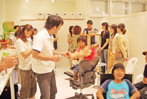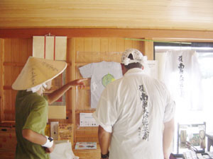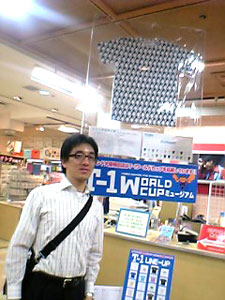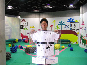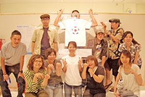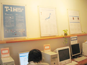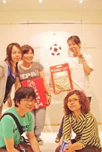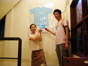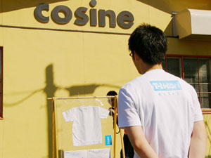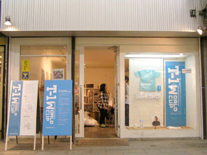 7月7日 金曜日 T-1最後の週末は、 じっくりたっぷりお届けします。 「T-1ワールドカップ」も残すところあと 金・土・日・月曜日の4日間! もちろん同じく、 「T-1ミュージアム」も残り4日間。 とはいえ、 日曜日で終了するミュージアムもちらほら。 迷っている人は、この週末が勝負です、 なんて言うとおおげさかもしれませんが、 最終日に決まっていないと、 落ち着かないような気がするので、 週末に選ぶことをおすすめいたします! どのTシャツが優勝するか、 1ヶ月たっぷり待った結果が楽しみです。 最後まで楽しんで 参加していただけるといいなあと思います。 では、館長のみなさまからのレポートを、 本日はたっぷりとお送りいたしますね! ※展示場所の期間や場所などの詳細については、 このページの下の方にあります展示場所一覧で、 チェックしてくださいね。 ニューヨークのKumo,Inc.です。 知人、仕事関係のデザイナー、 フォトグラファーさん達に 楽しんでもらっています。 ![]() ![]() スタジオの近くにはMadison Square Garden、 少し足を伸ばせばKorean Town、 Chelsea Market もあるので、 たまたまNYに来られている方や、 もちろんそうでない方も 気軽に来ていただければうれしく思います。 (アメリカニューヨーク Kumo,Inc.) ウスマン・ハックさんの作品を 展示しているシュガーデイズです。 展示を開始して、土日にご来店のお客様に 「これ売り物ですか?」 との問い合わせがたくさんあり、 ウスマンさんの作品が上位にくる 手ごたえを感じております。 お店の場所は、 金沢の中心部より少し離れた、 山側環状線沿いにあります。 道路の脇に「T-1」のステッカーを 貼ってある看板が出ているので 目印になるかと思います。 ![]() また、ジャパンツアーお疲れ様でした。 「ほぼ日」をご覧になって、 ご来場されたお客様のお写真です。 「ネットで見るよりも実物のほうが良いですね。 全種類見れたらもっと良いのになー」 というご感想でした。 ![]() (石川県金沢市 SUGARDAYS<シュガーデイズ>) 静岡の馬力屋です。 先日は、ステッカー、チラシの補充に来ていただき、 ありがとうございました。 ラストスパートかけなくちゃ‥‥。 知り合いのお店でも宣伝してもらってます。 夜お食事された後に外の 「そのほかいろいろのTシャツ達」のコーナーを 携帯の明かりを照らしてまで 見てくれているお客様がいたので 撮らせていただきました。 ![]() そして、当店のベスト5を発表します。 男性に人気は、 ・「ライオン跳ねている」 理由:ライオンの色と絵がいい ・「Fighting club」 理由:なんかいい 女性に人気は、 ・「104.5°」 理由:さわやかでかわいい色 どちらも平均して人気があったのは、 ・「JPNAA」 理由:文字と色のバランスがいい、 俺はこの色違いがほしいという意見もありました ・「Be Great」 理由:インパクトあるし、解りやすい 個人的には、 今頃「MaEum」が急浮上中! 皆さん一緒に楽しく迷いましょう。 (静岡県賀茂郡 馬力屋) キデイランド大阪梅田店岸本です! さて、今日、うれしい出来事がありました! 私事ですが、まず朝っぱらから クワガタを道端で見つけてしまいました!! それだけでもラッキーなのになんと夕方頃、 我がミュージアムにうれしいお客様が! 仕事をしていると、 じーっと飾られているTシャツを 見つめていらっしゃるお客様が目に入ってきました。 あっ! と思って声をかけてお話をしてみると、 なんとその方、 京都のミュージアム「flip up!」さんの館長さん‥‥の、 義理の弟さん!!!でした!! ![]() 「僕の義理の兄が館長なんです!」と‥‥。 うゎーーー鳥肌がたち興奮して、 何をしゃべったか覚えてません! 興奮状態で写真を撮らせていただき、 メッセージまでいただきました!! そこには「がんばりましょう」の文字が!!! ![]() とてもうれしい一日でした!! 義理の弟さんありがとうございました!! その他女性の方にも「ほぼにちは」って 声をかけていただきました!! こうやって輪がどんどん広がっていくと幸せです!! (大阪府大阪市 キデイランド大阪梅田店) T-1ミュージアム(和歌山)館長の福井です。 「和歌山県和歌山市 ぶらっと」での展示期間は、 終わってしまいましたが、 ミュージアムのレポートをお送りいたします。 今回の展示は、わたくし館長を含めた 和歌山大学の学生6名と和歌山大学OG1名が中心となり、 「まちづくり工房 ぶらっと」さんと 「THE POT CAFE」さんのご協力のもと実現いたしました。 (現在はTHE POT CAFE会場での展示となります。) 「まちづくり 工房ぶらっと」はまちの休憩所として 文字どおり何の目的も無く"ぶらっと"立ち寄るも良し ちょっとお金を払えばインターネットもできるし、 会議室としてもご利用いただける、 自由なスペースとなっています。 お店の前に立ち寄って、 一番最初に目に留まるショウウィンドウに 今回のTシャツを(ちょっと頑張って)展示いたしました。 ![]() お客さんに「すごいんだぞ」ってことを よりアピールするために、 ダメ押しで佐藤卓さんの最近