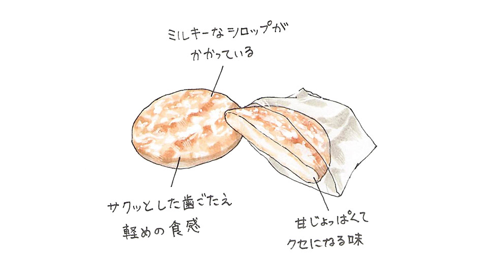 ロングセラーの人気のおせんべいが登場。見てると、口の中が甘じょっぱくなる気がするね。