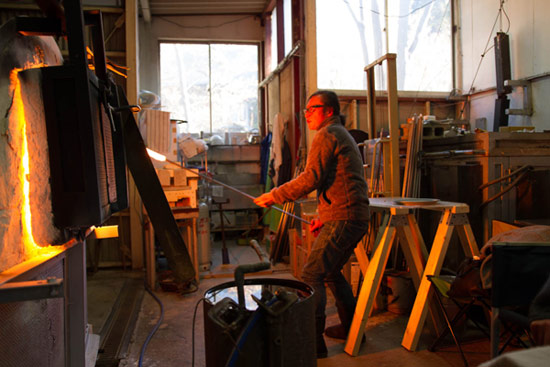 「宙吹き」という技法でつくったオブジェやうつわは、