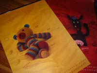 写真の中ではあみぐるみたちが、暗がりでねそべったり、
