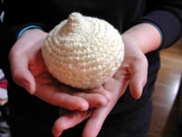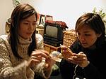 天使くん、編みはじめましたよ〜〜!!![]() 「あみぐるみコンテスト」の応募受付開始ももう間近!! そろそろ本気ではじめなければ 初心者のわたしには間に合わないよー。 まずはみねさんの編み物講座をじっくり読んで、 ふむふむ・・・。 なんとなくはわかったけれど、 何しろ編み物なるものに生まれてこのかた 一度も触れてたことのないわたしには どうにもこうにも不安がいっぱい! 気持ちは焦るが手は思うように動かず・・・ さあ困ったぞ。 ここでまたまた、毛糸とかぎ針を持って 高森先生のところへ習いに行きました!! と、その前に、高森先生のお部屋で 毛糸ではないナニカで編まれた、 不思議な物体を発見! 先生にナイショでじーっとのぞいてみると、 ゴムチューブを細編みで編んでいる途中みたい! そうかっ、なるほど。 今回の「あみぐるみコンテスト」は、 編む素材は“編める素材のものなら何でもよし” ということだから、 先生は毛糸以外の素材でも編んでみたのねっ。 そのナゾの物体はまだコースターくらいの 大きさだったけど、 きっとこれがあみぐるみになるにちがいない。 みなさんも、細いゴムチューブであみぐるみを作ったら すごくかわいいかもよ〜〜!! 毛糸以外で作るならぜひぜひおすすめだよ。 さて、初心者あややは毛糸の持ち方からお勉強です。 そのくらいカンタンよ。 しかしさっそく先生からのご指摘が・・・ 「あややちゃん!! 毛糸は右手じゃなくて左手で持って!!!」 ![]() あっ・・・そ、そうですよね、 右手はふつうかぎ針を持つんですよね。 とまあ、こんな感じ前途多難なスタートではありましたが、 ひとまず、超基本的な編み方“細編み”を せっせと大特訓しました!! ![]() 最初はどうなることかと思いながら、 やればやるほどどんどん夢中になっていく感じ。 心の中ではすっかり “アン・ドゥ・トロワ”のリズムを奏でながら 軽快に(?)細編みがすすんでいったよ。 途中で1回休憩したけど、あとはまったく休まずに ひたすら編み続けて7時間!! ついに完成よーん。 あっ、「天使くん」じゃないよ、 天使くんの「あたま」がだよ。 ![]() たまねぎみたいでかわいいでしょ〜? 鼠穴スタッフは、これを見て 「エロチック部門で応募すれば」とか言うけど、 これは正真正銘、天使くんのあたまだよーー!! ちなみに不器用大魔王のあややは だんだん段がすすんでいくにつれて 目が荒くなっていき、あたまの最後の段は “1センチ四方”だとdarlingにつっこまれ、 中に詰めた綿は当然スケスケに見えているのでしたっ。 でも毛糸が生成りっぽいクリーム色だから、 中の綿が目立たないもーん!! みなさんもぜひ一緒に天使くんを編んでくださいね!! 近いうちにあややは体を編みはじめますよー。 <高森先生のワンポイントアドバイス> ●天使くんははじめにいきなり “難ポイント”が登場します。 「あたまのてっぺんのとんがっている部分」です。 ここは少ない目数で3段編むのがとても難しいです。 ほんとに小さな円を ひたすら編み続けるんですもの。 ここをまず丁寧にかつ慎重に編むことが大切!! ●あたまの部分の6段目から9段目は 規則正しく7目ずつ増えていくので 自分なりのリズムを作ると作り易い! 例)アン.ドゥ・トロワなど ●編み物初挑戦の人は、編み目がゆるくなりすぎて 穴が開いてしまっているように見えるから、 なるべく綿の色(白)に近い色を選びましょう!! ●反対に編み目がきつくて、 固いあみぐるみになってしまう人は、 かぎ針の号数を大きくすると、 針が太くなる分、編み目も大きくなってゆったりするよ。 ![]() 高森先生のイラストです。 <きょうのスペシャルニュース!!> あみぐるみコンテストのチラシができました!! 近々、全国の手芸店やいろんな学校の手芸部などに お送りするつもりです!! ★あみぐるみコンテストの応募要項は、 こちらをごらんください。 |