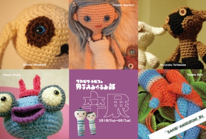 タカモリ・トモコさんと男子あみぐるみ部への激励や感想などは、 メールの表題に「あみぐるみ」と書いて、 postman@1101.comに送ってね。