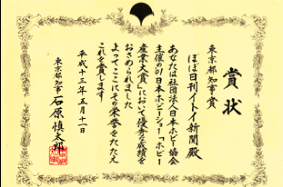 「第1回ホビー産業大賞」の“東京都知事賞”を
