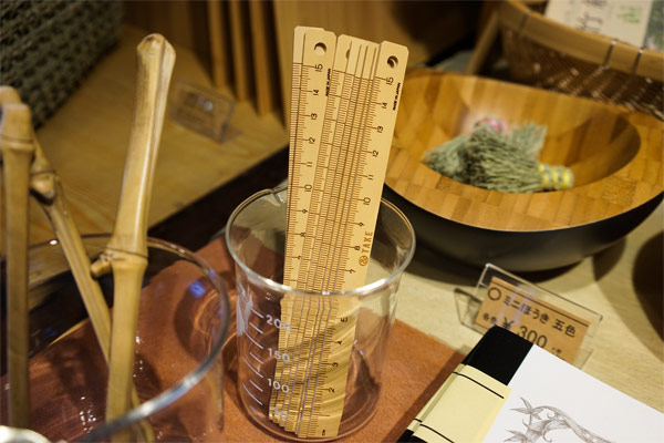 竹の枝をつかったボールペンと、 市川商店オリジナルの竹のものさし。