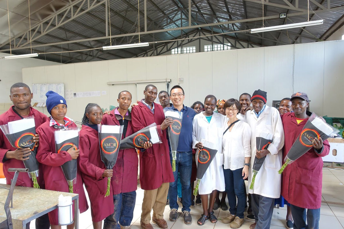 ▲農園のみなさんと、グリーンパックスのみなさん。