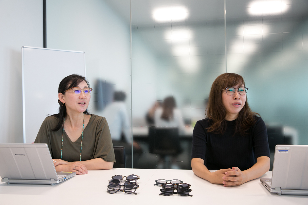 「お客さまは、丸形のメタルフレームがお似合いですよ」