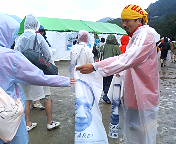 みなさん進んで、岡本太郎さんのお顔入りゴミ袋をとりにきてくださってまーす!
