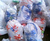 たくさん積み上げられたゴミ袋。なんだかすごい迫力です‥。
