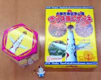 「太陽の塔」パッケージのチーズ蒸しケーキとゴーフレット。