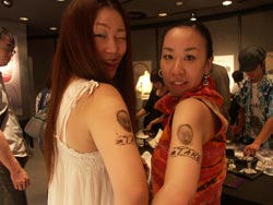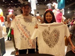 傘やジーンズ、千円札にスタンプした人も。