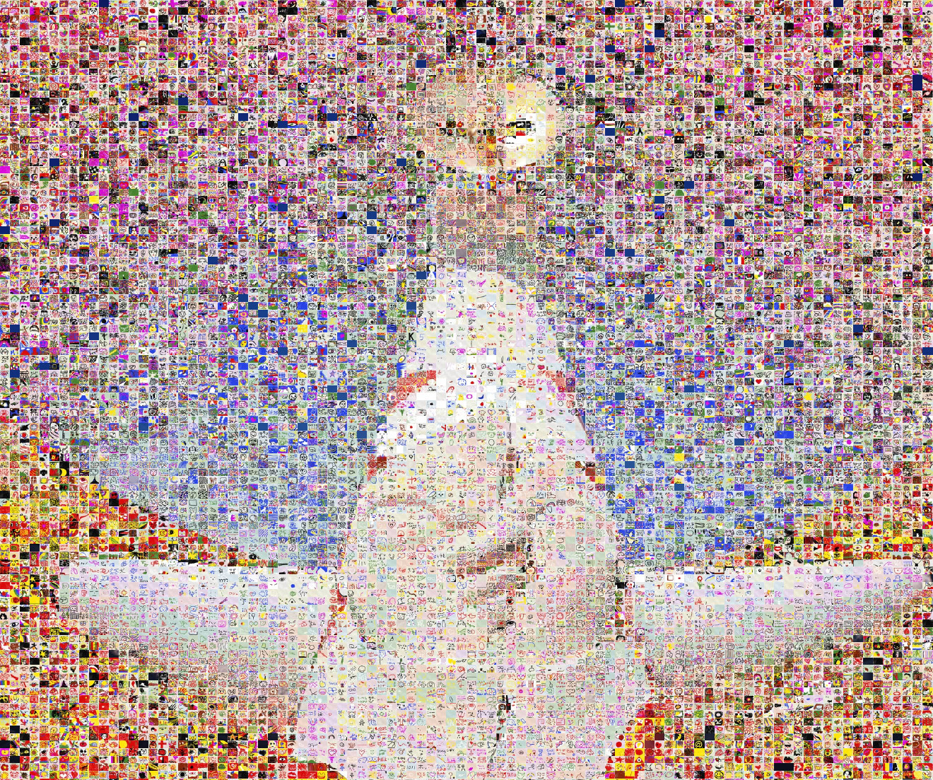 モザイクのように組み合わせた「太陽の塔」、