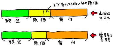それ以外の売れ残りそうな分の原価は寄付から引く、