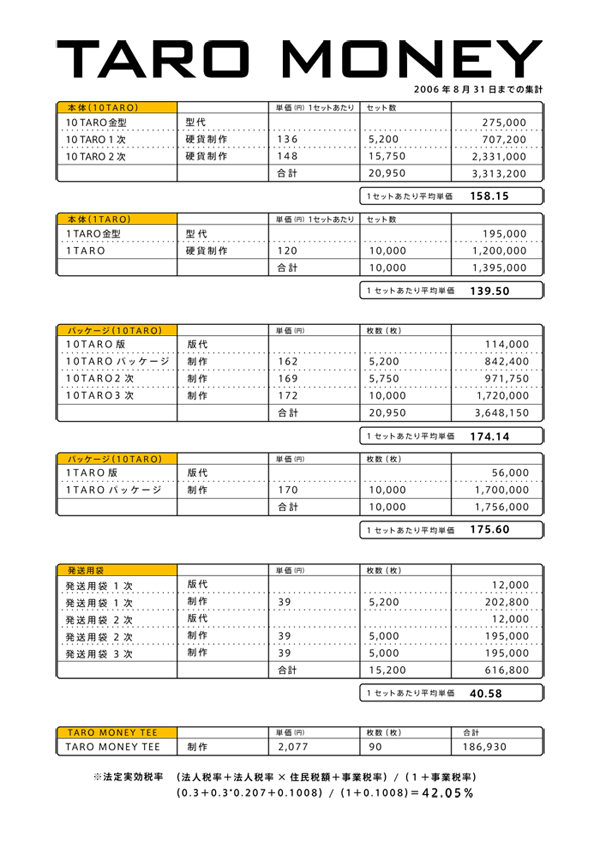くわしい内訳にある、TARO MONEY硬貨制作費、