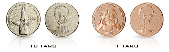 贋金作りをするつもりはないんです。 岡本太郎の顔と『太陽の塔』『午後の日』の絵が入った