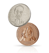 片面には、凹凸の“型押し”で岡本太郎さんの顔が、