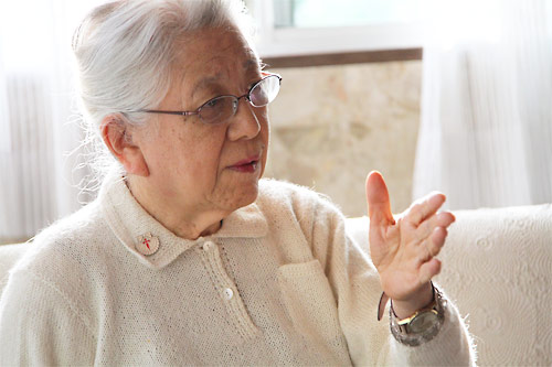 | 辰巳 | 私はね、亡くなっていく方の脱力感とは どのようなものだろうと、 いつでも、考えているんです。 その脱力感から 少しでも守ってあげたいという気持ちで。 |
