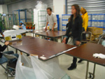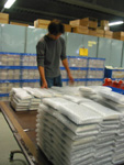 辰巳のアクロストランスポートさんの倉庫に 到着しました。 これより、様々準備をいたしまして、 本格的に開始いたします。 ええ、こんな段ボールの上から お送りしますね。 (そのあと、うーさんに机をつくってもらった。)