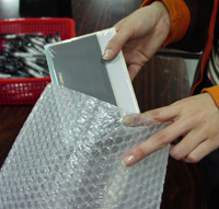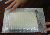 ぜーんぶまとめて、透明のプチプチ袋に入れる作業です。