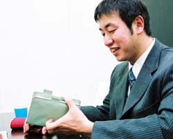 たとえば、営業先でプレゼンをするときに、 こちらが紙の資料を持っていって、 なおかつ、ノートも広げるってなると、 場所も取りますし、ごちゃごちゃしてきて、 相手も自分も、 何が何だかわからなくなってしまうのですが、 「ほぼ日手帳」は、 大きさが文庫本サイズとコンパクトな割に、 なんでもいっぱい書き込めるので、 ノート代わりというか、ノートいらずで、 すごく重宝してますね。 また、手帳だと日にちも意識しやすいので、 「何月何日にどういう会議をしたか」ということが、 すぐにわかって、議事録代わりにもなるんですよ。 「そういえば、あの数字は、なんだっけ?」 というような場合も、 「ああ、ちょうど1ヶ月前くらいだったかな‥‥」 と思って、1ヶ月前あたりのページを ペラペラめくっていると、ちゃんと見つかるんですよ。 この手帳には、ほとんどの記録がちゃんと残ってますね。 あまり書き込むスペースがないと、 「これくらいは、覚えられるだろう‥‥」と思って メモしなかったりするんです。 そのメモしなかったことが、 後々、「しまった・・・・」なんてことにつながるので、 この手帳を使っていると、 そういった“漏れ”も少なくなりましたよね。 ![]() 30分ごとのアポイントの管理が楽だ、といったことや、 “横の流れ”での情報管理や、 議事録としての活用方法は、使い方の参考にもなりますね! さらに、「ほぼ日手帳」ならではの、 こんなよろこびも、語っていただきました。
