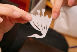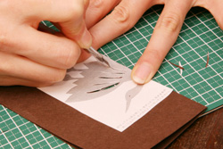 型紙を剥がして開いてみると、 2頭4足の鶴?