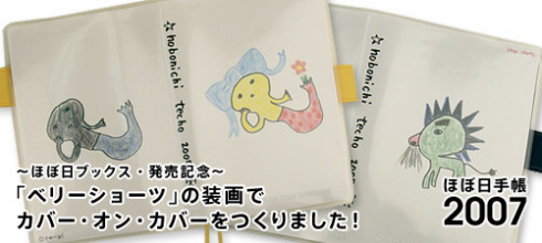 なんとなくのイメージは、 上が「オンナのコ用」、下が「オトコのコ用」です。 上下ともに、左側が「ベリーショーツ」のケースのイラストで、 右側が表紙のイラストになっています。 本では、ケースと表紙の絵が離れ離れだけれど、 手帳では、いっしょに載ってるんですよ~。