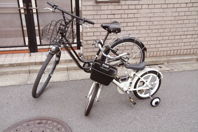 手前にあるのはよつばが乗っている自転車。ちっちゃい!