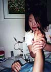 | 第18回(1月16日の暮らし) 腸内洗浄レポート〜挿入されて・・・の巻 (前回までのあらまし) 『腸内洗浄』という目新しい名前に惹かれ、 自ら被験者を引き受けたROCK西本であったが、 タイアップ元である「シネスイッチ銀座」吉澤嬢の 「最後まで見届けるわよ」発言により、 自分の便が衆人監視にさらされることになった。 「それは趣味なのか?仕事なのか?」 という困惑するROCK西本をよそに、 映画「ホテル・スプレンディド」のチラシ、ポスターを せっせと治療室に貼りまくる吉澤嬢であった。 ![]() まだまだ貼るわよ。 一旦、全裸になって治療服に着替え、 これから挿入される不安と 異性に自分の便を見られるという恥ずかしさに 悩まされ、一人呆然とするぼくでしたが、 もう逃げることは出来ないと腹をくくりました。 ![]() そろそろ覚悟を決めた。 「これは治療ではなく、そういうプレイなのだ。」 と覚悟を決めると気が楽になるもので、 回りにあるものをごそごそと観察し始めました。 まず目に入ってきたのが、 ぼくのお尻と腸内洗浄器を結ぶ透明な管。 袋に入っていることから、使い捨てであることが解ります。 だから清潔、安心。 ![]() こいつがぼくの中に・・・ さらに、ネットで検索して以来、 興味があった、「麻酔ゼリー」も発見。 こうなると宝探しのようで楽しくなってきます。 ![]() 麻酔ゼリー発見! こうなると、人間恐ろしいもので 「さぁ、矢でも鉄砲でも持ってきやがれ!バッチ来い!」 とお尻を突き出すくらいにまで開き直ってきました。 そうしているとぼくの治療を担当してくれる 看護婦の大塚さんが現れました。 「今日は大塚さん頼んだぞ!」と心の中で叫びながら、 「初めてなので、やさしくお願いします。」 とお願いしました。 大塚さんはぼくの心を解きほぐすように、 これから行われることを説明してくれます。 ![]() 腸内洗浄ってのはですね。 やはり初めての方は緊張される方が多いらしく、 緊張したままだと、上手く便が出ないケースも あるのだとか。 ゆっくり時間をかけて説明して心をリラックスさせながら 治療は進みます。 ![]() 手首とお腹に 特別調合のアロマオイルを 塗ってもらいます。 ひととおり、説明が済んだところで 大塚さんが 「それじゃ、直腸診をしますね。」 とビニール手袋を付け始めました。 ![]() それでは仰向けになってください。 『直腸診』 それはお尻に指を突っ込んで 直腸まわりに傷や、異変が無いかをチェックすること。 いよいよ、本格的になってきました。 立て膝をして仰向けに寝てます。 下半身には当然、タオルケットがかけられていますから、 吉澤さんにも恥ずかしい部分は見られないので 安心して診断に望みます。 指が入るだけですから、座薬みたいなものです。 直腸診は問題無く、終了。 今まではただの検査。 これからが腸内洗浄の治療です。 まずはお尻とこれから入れる管に 「麻酔ゼリー」を塗ります。 麻酔ゼリーを塗ると、挿入の際の違和感が軽減される とのこと。 「ホントかよ?」 とこれから入れる管を見ると、 「これがデカイ!」 全長15センチ、直径2〜3センチのもある まさしく『棒』そのもの。 「ええ〜こんなデカイのが入るんですか?」 「ええ、そうですよ。」 とまぁ、あっさり答える大塚さん。 ![]() これが入るのだ! 「それでは横向きになってください」 という大塚さんの指示通りに横向きに寝る。 いよいよ、本番。 ピーンと締まった空気が個室を支配する。 もうこれは儀式だ。 これには、それまであれだけ騒いでいた吉澤さんも 静かにならざるを得ない。 もはや『プレイ』と割り切っているぼくは その緊張すらも楽しめる状況にまでに高まっている。 ![]() プレッシャーを楽しむおれ。 しかし、いくらプレッシャーすらも味方につけ、 麻酔ゼリーを完璧に塗られたぼくであっても、 全長15センチ、直径2〜3センチの 『棒』には勝てなかった。 言葉では伝えきれない、その状況。 3枚の連続写真で感じとってください。 (やらせ一切無し。) ![]() 入りますよ。 ![]() うわっ! ![]() 入ったぁ〜。 一回、入ってしまったら後は楽なんだけどね。 それでは次回、治療篇でお会いしましょう。 今回の挿入篇だけで25枚の写真を撮り切った、 シネスイッチ銀座の吉澤さんからのお知らせ。 「ホテル・スプレンディド」の公開は 2月10日からですが、 2月14日のヴァレンタインデーには 「ホテル・スプレンディド」を 観に来て頂いた方に「腸内洗浄」招待券 (初診料10000円&18000円)を10名様と 初診料10000円OFFの、 ご優待券を500名様にプレゼントをします。 |