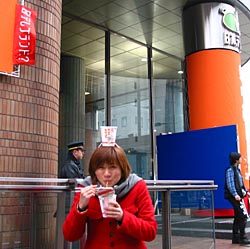 日テレ前で、“さるのおせっかい”を食べ続ける