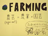 では、仕事はあるのか? という所で次のフリップに続きます。 3:FARMING=農芸 ![]() ここで、仕事としてではなく、 趣味としても働ける提案として 「農芸」という考えを発表します。 ここを説明するにあたって メモには、こう書いてありました。