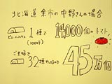 番組では山田五郎さんから 「そうやって都会から農業をしようと する人が多いけど、 ほとんどの人が挫折してるでしょう」 ってツッコミが入って、 そのツッコミに答えていたので ここのパートの全ては 説明しきれなかったのですね。 7:21世紀は野菜の時代 ![]() つまり、MADE IN JAPANの野菜には ポテンシャルがあり、 国際競争力があるってことでもあります。 日本が如何に農業国として可能性があるか? 農業従事者が減っていく中で 働きたい老人が増えていっている。 この人達が住みながら働けると いうことを説明した所で、 その人達が作る作物の可能性について 話は進んでいきます。 8:北海道余市の中野さんの場合 ![]() この収穫量にはちょっとビックリしませんか? 農繁期にはお手伝いしてくれる方も いらっしゃるそうなのですが 基本的に二人でも、 こんなに凄い収穫量なのです。 9:星一徹農法! ![]() 少ない労働力でも、 この収穫量を可能にする農法の説明として 永田農法を紹介しました。 メモを見ると 永田農法の別名として