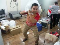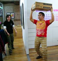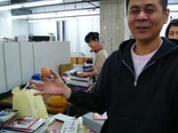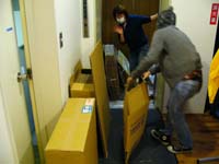 | おっと、こちらでは、 ハラマキのサンプルを囲んで思い出話。 「このデザインは出してもよかったかなあ」 ちなみに、これらはすべて、 発売されなかったデザイン。 サンプルまでつくったんだけど、 さまざまな理由でボツになったのです。 こちらは、ユラールのTシャツの 発売されなかったカラーバリエ。 胸元のステッチの色も、いろんなパターンを さんっざん試してたもんなあ。 おおっと、地獄に大物が集まってる。 あ、重ねて言っておきますけど、 これらは壊れてますからね! ムシが湧いてますからね! 「ください」とか言わないでくださいね。 もちろん初期化もしてますし、業者も来ます。 おめんが増えてる! おめんが増えてる! 武井さん武井さん、 カメラを向けると芝居するのやめてください。 ひじょうに不自然です。 んん? カバンが動いてる‥‥! ってことは、木村くんはどこかにいるんだな。 ぼちぼちゴミもまとまりはじめましたよー。 さあ、ラストスパートだ! 本は必要なものと捨てるものに分けて! ‥‥いや、だから、武井さん。 芝居するのやめてくださいって。 佐藤さんはシュレッダー担当です。 いろんな書類を刻んでいます。 オガー&ゆーないとがダンボールをまとめて、 エレベーターに! えっちらおっちら バケツリレー方式で、エレベーターに乗せろ! と思ってたら、作業途中でドアが閉まって大爆笑。 このおもしろさ、写真じゃ伝わりませんね。 大丈夫よー、ドアを開けましたわー。 このおもしろさ、写真じゃ伝わりませんね。 そんな寸劇めいたやり取りを無視して、 佐藤さんは書類をシュレッダーにかけるのです。 おっと、新デザイナーのぐっさんが ダンボールを抱えてやってきた! 背後にしたがっているのは 斎藤、西田のアルバイトコンビ。 どんどんエレベーターに積んで‥‥。 行ってきまーーーす!!! そんな元気な男子たちを無視して、 佐藤は書類をシュレッダーにかけ続けるのだった。 おつぎはパソコンとモニターだ。 「そこ、どいてどいてー!」 エレベーターに向かう武井とモギ。 エレベーターが来た、と思ったら、 上がってきた男子3人組と鉢合わせ。 「じゃあ、これ、持って行ってよ」 また行ってきまーーーす! そんなことはともかく、 佐藤は一心不乱に書類を シュレッダーにかけ続けるのです。 父さん、母さん、私は元気です。 ところで、この、 水島先生が表紙を描き下ろしたNumber、 どうしても捨てられないんだけど。 ボーズさん、どう思う? と、そこに糸井重里の絶叫が!! 「棚の奥から、こんなもんが出てきたよーー!」 え? なんスか、なんスか? 「ほらこれ‥‥タマゴ!」 た、た、タマゴ??? 棚から? ええええ? 大丈夫なんですか、それ! 「わかんない。なんで棚にタマゴが‥‥。 これいつのタマゴだ? あと‥‥中はどうなってんのかな? ちょっと誰か割ってみない?」 うっそぉ、やめましょうよ! 「あ、じゃあ、アタシが割りますよ」 うっそ、マジかよ! 誰かと思えばモギちゃん! さすが、カボチャをくり抜く女! いや、でも、やめときなって! 「平気、平気」‥‥コツンッ! 「きゃあ」とギャラリーから軽い悲鳴が。 さて‥‥謎のタマゴの中身は‥‥? ‥‥ゆでタマゴでした。やや傷んでます。 なぜこれが棚の中に? いつから? 謎が謎を呼ぶばかりですが、 ぼちぼち大掃除は終わったみたいですよー。 ぴかぴかーーーっ! おお、キレイ! なんだ、やればできるじゃないか! 地獄があったあたりも、これ、このとおり! このへんなんか、キレイすぎて気持ち悪い。 なんか、気取りすぎだわ。感じ悪いわ。 ていうか、オレの机、 また変なフィギュアが増えてるよ! 誰だ、不法投棄したのは! ともあれ、無事に大掃除は終了です。 最後に、もらいものの クリスマスカードをドアに貼って、 メリークリスマス。おつかれさまでした! 来年もよろしくお願いします! 最後まで読んでいただき、 ありがとうございました! それでは、みなさんも、大掃除、 がんばってくださいね! コラーーーーッ! 誰だ! どせいさんにカツラかぶせたのは! 〜おしまい〜 |