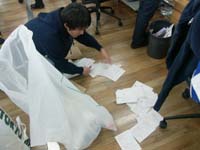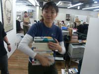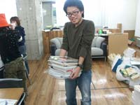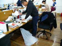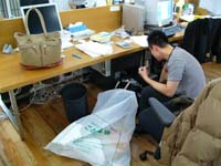 | 地獄・オア・アライブ2004! 今年も捨てます、捨てさせます! 事務所の大掃除を無意味にご報告! はじまりの挨拶は、地獄! やあ、みなさん、ほぼにちわ。 1年ぶりのご無沙汰でございました。 ほぼ日刊イトイ新聞の永田と申します。 今年も大掃除の季節がやってまいりました。 昨年に引き続き、その様子を 無意味にだらだらとお伝えしようと思います。 さて、ご存じの方もいらっしゃるかと思いますが、 「ほぼ日」では、昨年より、 大掃除のことを「地獄」と呼ぶようになっています。 「地獄」というのは略称で、 正式名称を「地獄・オア・アライブ」といいます。 なにがなんやらさっぱりわからんわい、 という方は、どうぞこちらをお読みください。 簡単にいうと、「地獄・オア・アライブ」とは、 身のまわりのものをすべて一度見直し、 捨てるものと捨てないものに分け、 捨てるものは、フロアーの中央に設けられた 「地獄」と呼ばれるスペースへ どんどん捨てていくという行いのことなのです。 わかりやすくいうと、 「気合を入れた大掃除」ということなのです。 捨てるものは「地獄」へ。 捨てないものは「アライブ」。 そんなこんなの東京糸井重里事務所、 ときに12月15日午後2時過ぎ、 いよいよ今年の「地獄・オア・アライブ」が はじまるようです! 押さないでください、押さないでください! 2時開始予定でしたが、少々遅れてスタートです。 さあ、みんな、捨てようぜ! 地獄の海へみんなでくり出そうぜ! おおっと、乗組員が一斉に立ちあがって ガサガサやりはじめました。あちこちで 「これ地獄かなあ?」「地獄っしょ!」 といったわけのわからない会話がかわされています。 ご紹介しましょう。ここが「地獄」です。 まだなにもありません。いずれゴミで満ちます。 んん? なにか地獄に注意書きがしてありますね? どれどれ、なんて書いてあるんでしょうか‥‥? 「燃える地獄」! そんなことばあるのか! 「燃えない地獄」! こっちのほうが違和感! 「地獄のフリーマーケット」なんてのもあるようです。 要するに、欲しい人は持ってってね、っていう場所。 さあ、棚の整理もはじまりました! どんどん捨てよう! 今年の地獄、今年のうちに! うわーーー、ひどいことになってきた。 まさに阿鼻叫喚の地獄絵図! なぐごはいねがー、なぐごはいねがー。 糸井重里も捨てております。 意外にも、うちの事務所において、 社長の席はフロアーのど真ん中にあります。 棚を前にして座り込み、 しばし途方に暮れているのは、りかさん。 電気的なものに官能的な喜びを感じる彼女は しばしば不要なものを溜め込んでしまうのです。 「箱が‥‥」というひとりごとが聞こえました。 おおお、来たっ! 木村俊介、始動! 誰よりも速く、誰よりも効率的に、 なにもかもをあっという間にこなしてしまう男! 『MOTHER2』を1日でクリアーした男! 引越をタクシーで済ませたことがある男! 「木村くん、あれおもしろいよ」と言ったら、 翌日には「読みましたよ」と必ず言う男! 本を数冊抱えて奥の部屋に1時間ほどこもり、 出てきたときにはすべて読んでる男! 去年はぶっちぎりの速さで掃除を終えていた! こちらの机には各種のマスクが用意されています。 大掃除にホコリ対策、重要です。 マスクを装備してナカバヤシが捨てる! その眼前に、書類の山、山、山。 尋常ならざる量の書類を管理する人です。 スカートよりはジーンズを好む人です。 スイーツよりはラーメンを好む人です。 ときどきおかしな色の靴下をはいている人です。 おっと、ぼちぼち、 地獄にものが捨てられはじめました。 まだまだ地獄にも余裕がありますね。 大物が来ました。これは何かの棚でしょうか。 さて、ここで注釈しておきます。 昨年、いろんなものを捨てることを書いたところ、 「それをください!」「フリマに出して!」 「とりにうかがうので売ってください!」 といった意見をいただきました。 誤解がないよう極端なことを言っておきましょう。 ここで捨てられるすべてのものには、 ムシが湧いています! カビがはえています! ふたたび使うことは、ムリなのです! さあ、それではここで、 おもしろゴミをさがしてみましょう。 ‥‥にしもっちゃん、なにそれ? トラックスーツ? キルビル風の? なんに使ったんだよ、そんなもん。 ああっ、あれだ! 智慧の実イベントのとき、 これを着てパンフレットを売り歩いたんだった! さっき途方に暮れていたりかさん。 うわ! 箱! 箱! 箱! キーボードにメモリにケーブル、LANカード‥‥。 ほんとにこの人は機械が好きだなあ。 りかさんシリーズ第2弾。 ええと、おびただしい量のDVD−R。 ‥‥ほんとにこの人は。 りかさんシリーズ完結編。 ‥‥熊力Z? なんだこりゃ? 栄養ドリンク? 「そう。どうしても力尽きそうなときは、 最後の手段でこれを飲むんです」 もう若くないんだから、徹夜はひかえてください。 棚を空けたら洗面用具がありました。 こちらはハリーの持ち物です。 もう若くないんだから、徹