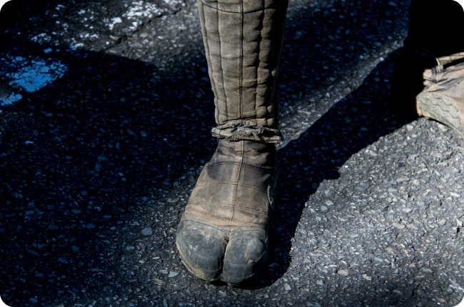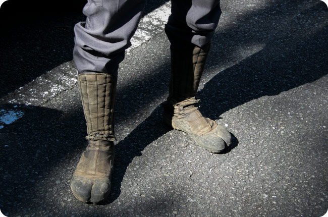 地下足袋越しの感触。