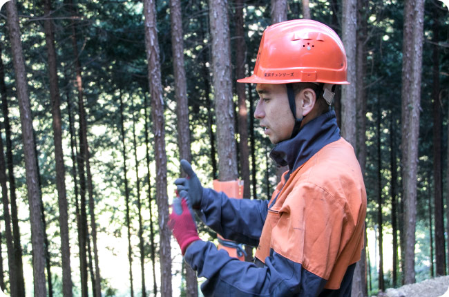 チェーンソーを持たされて間伐の仕事を。