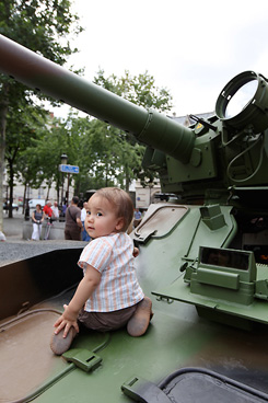 行われるのは、パリっ子と軍隊・消防車・警察などの