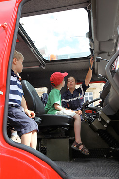 こどもたちにいちばん人気の消防士さんです)