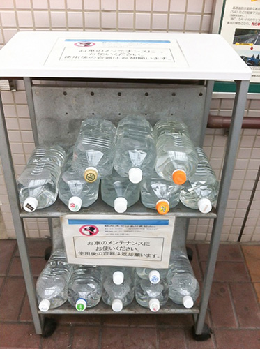 「お車のメンテナンスにお使い下さい」 なんてお水まで発見しちゃいました。 さすが「お・も・て・な・し」の国だわぁ〜。 と、ため息。